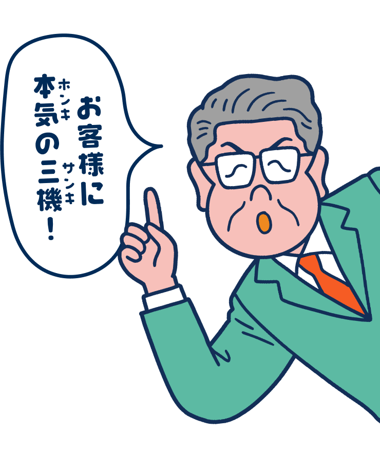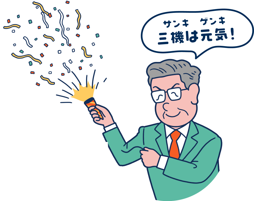 温和な⼈柄は三機社員の良いところですが、チャレンジ精神も⼤事にしていきましょう!