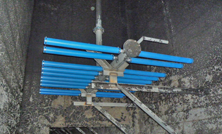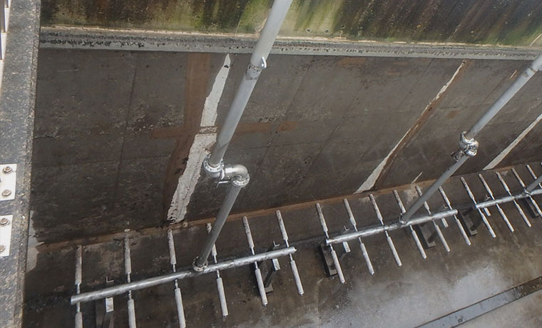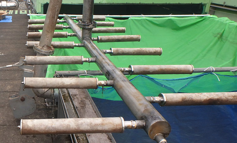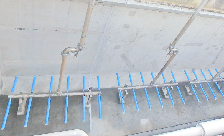 反応槽の底面全面に分散配置し、気泡を分散して酸素移動効率を高めた方式。