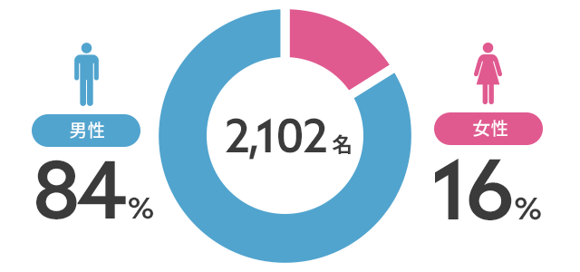 業種柄、男性の比率が多い会社ですが、女性の働きやすい環境づくりに積極的に取り組んでおり、女性従業員の割合は年々増加傾向にあります。