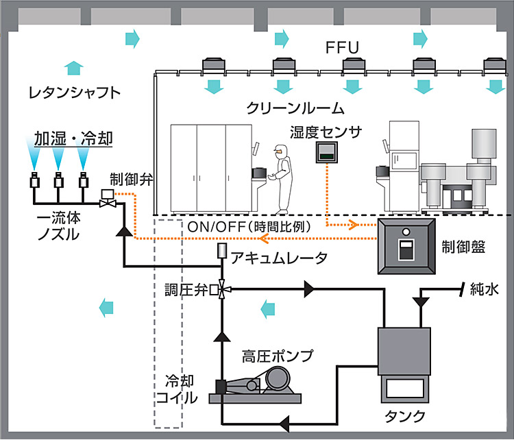 時間比例制御を用いることでクリーンルームの湿度制御にも対応できます。