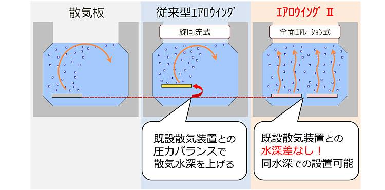 旋回流式 → 全面IPレーション式で酸素移動効率が向上