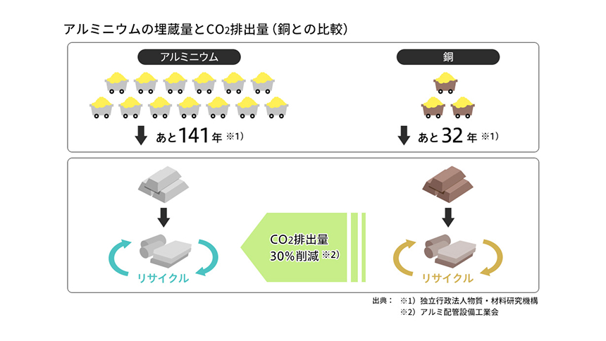 配管材料として一般的に使用される銅配管よりも50%軽量なアルミニウム配管を採用しました。