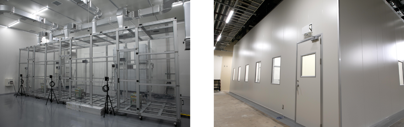 構築した極低湿度環境試験室 写真(左:テストルーム外観、右:低露点ブース)