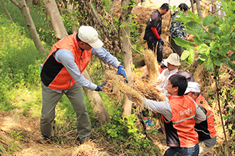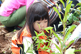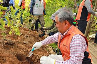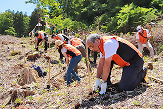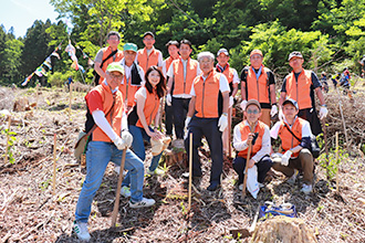 制度発足10周年を記念して、山梨県甲斐市の山林に苗木を植樹。CO2削減提案を採用いただいたお客さまへの感謝の気持ちをこめた「感謝の森」をつくりました。これからも育樹活動をおこない、地球環境を守る森づくりに取り組んでいきます。